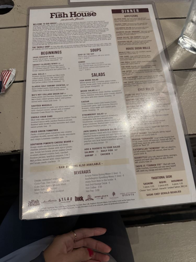 Welcome to The Fish House, a seafood haven located in Pensacola, FL. This casual yet welcoming spot offers a variety of options for seafood lovers, including delicious vegan and limited vegetarian choices. The menu features fresh and flaky Grouper Bites, Pecan Crusted Catfish, and the famous Grits A YaYa. Customers rave about the flavorful dishes, such as shrimp and grits, collard greens, and juicy hamburgers. The restaurant provides excellent service, with friendly and professional staff ensuring a memorable dining experience. The Fish House's cozy atmosphere, outdoor seating, and happy hour specials make it a must-visit spot for lunch or dinner. Don't forget to try their sushi rolls with blue crab lump meat and fresh raw oysters when in season. With a full bar, free Wi-Fi, and ample parking, The Fish House is the perfect place to indulge in delectable seafood delights.